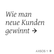 Kirchgessner Kommunikation klärte mit den Verantwortlichen Werte und Leistungen des neuen Unternehmens. Auf dieser Basis entstand der Auftritt, die Marke, der Markenauftritt und eine Positionierung, die für das neue Unternehmen eine hohe Relevanz in der Welt des Mittelstandes gewährleistet. Nach der Identifikation des Kern-Marktes startete AXSOS im August 2010 mit der gezielten Marktbearbeitung.