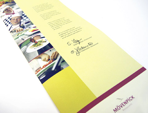 Mövenpick beauftragte uns, die Chancen, die eine Speisekarte für den Gast und die Restaurants bieten kann zu durchdenken und hat uns mit der Entwicklung einer komplett neuen Konzeption betraut. Also haben wir der Mövenpick Speisekarte ein Gesicht gegeben und den Umsatz und die Wertschöpfung verbessert. Und ein System entwickelt, die Mitarbeiter geschult und und und…